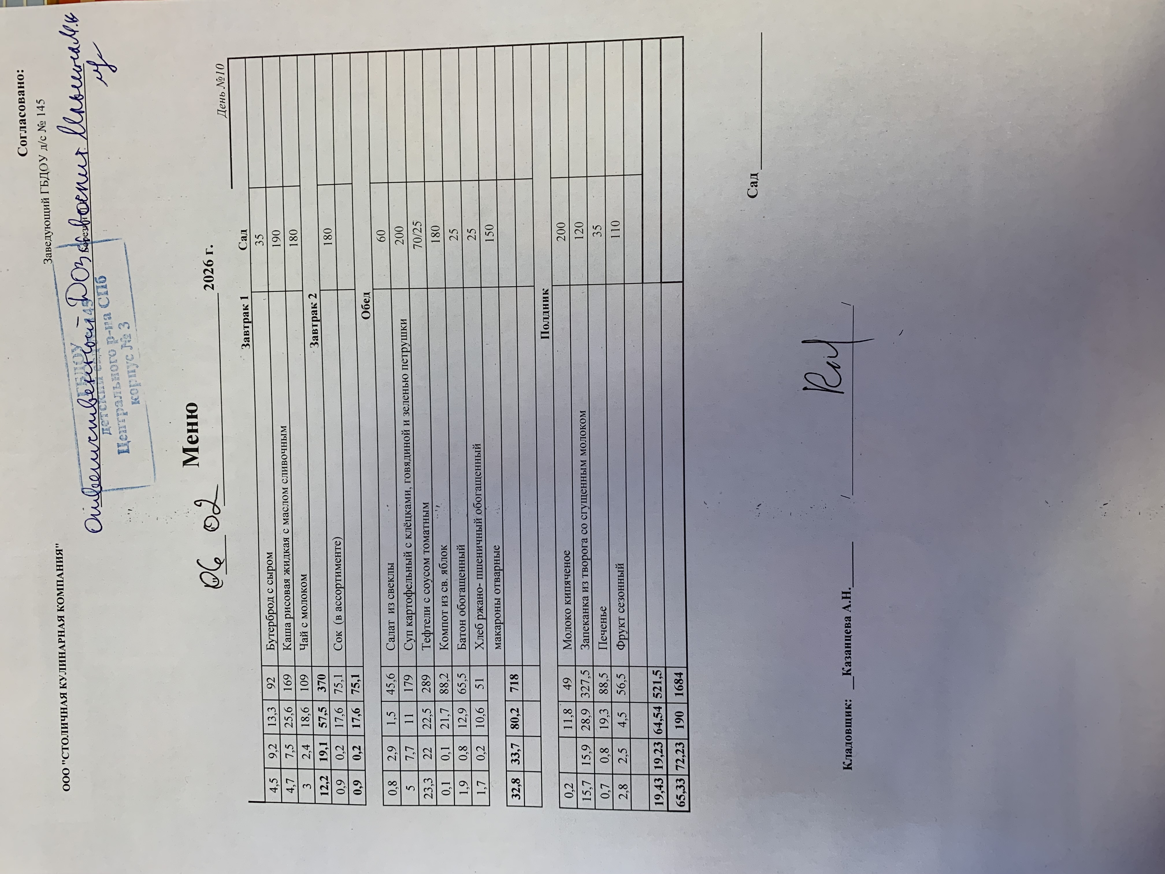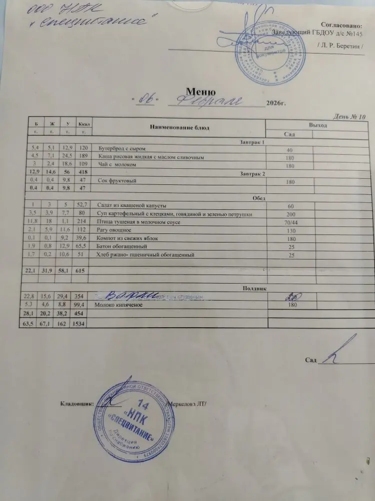 Ежедневное меню 10 часов