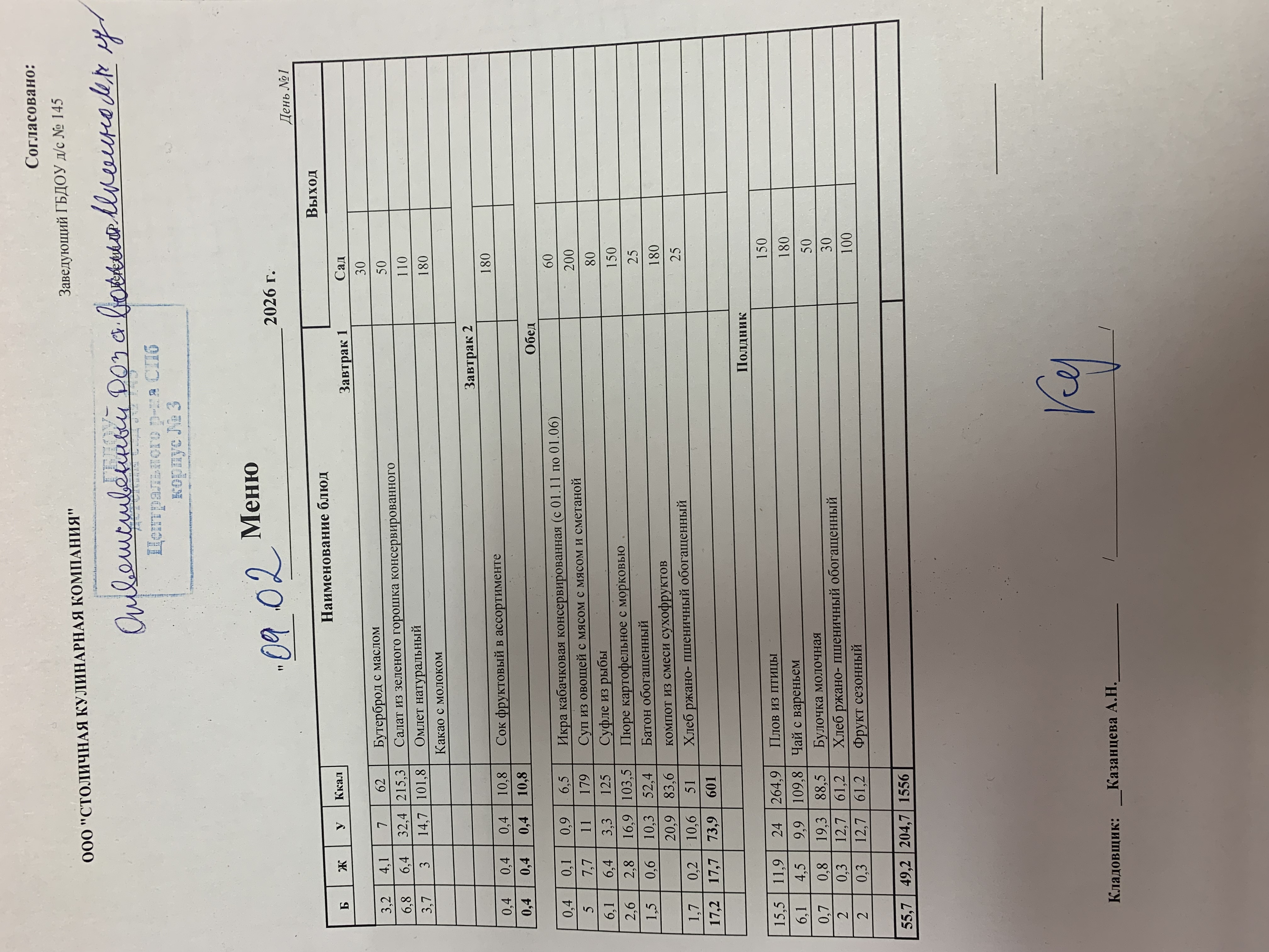 Ежедневное меню: